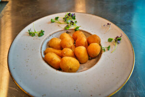Situado en el corazón de Madrid, junto a las Cuatro Torres, Barlovento nace como un lugar de encuentro, con una carta pensada para compartir, con platos que viajan entre lo clásico y lo inesperado: desde la ensaladilla con mejillones y piparras hasta el tataki de wagyu con salmorejo o la torrija con helado de Baileys.